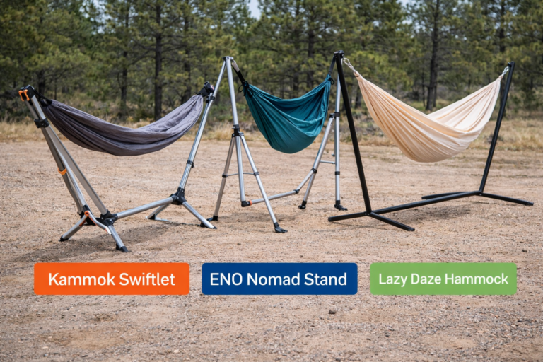 - Lazy Daze Portable Hammock Stand: This is a great budget option that supports double hammocks but lacks the versatility and premium quality of the Kammok Swiftlet. If you don’t mind sacrificing some advanced features for a lower price, this stand could be a good choice.