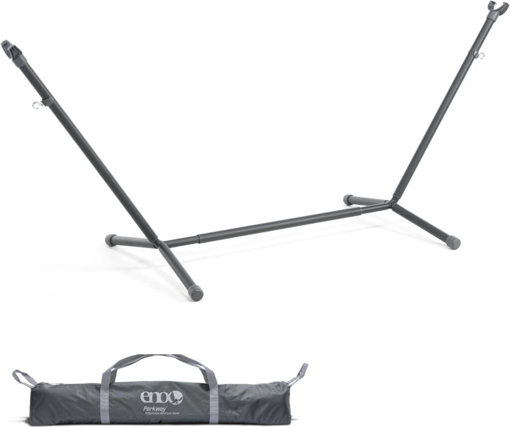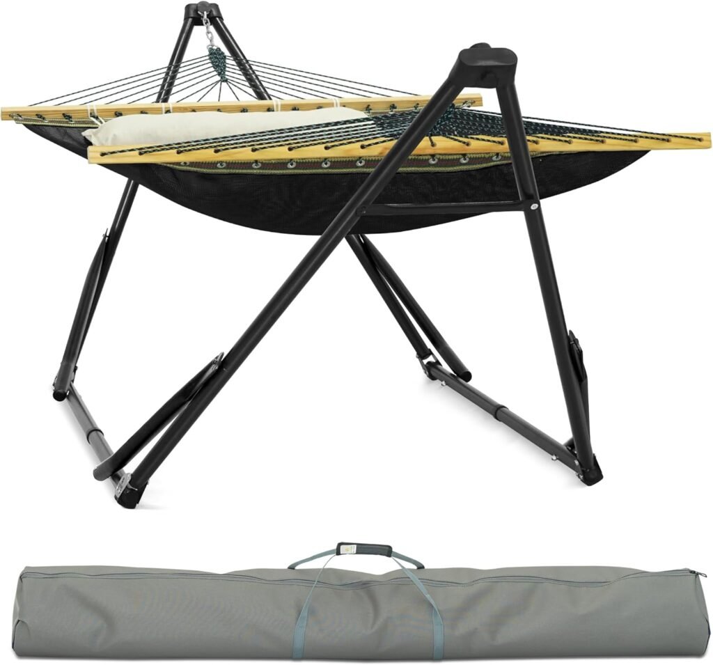 Relax anywhere with this adjustable, space-saving hammock stand designed to fit comfortably in small indoor or outdoor areas. The no-tools-needed setup allows for quick assembly and easy height adjustments, so you can customize your hammock comfort in minutes. Crafted from premium powder-coated steel, this stand offers long-lasting durability and resistance to everyday wear. A convenient carry case is included, making off-season storage simple and light travel effortless for comfort wherever you go.